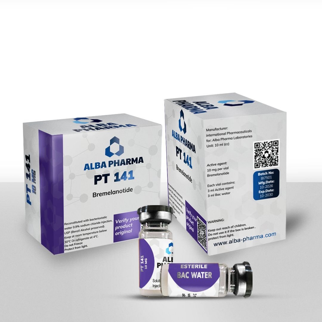 El PT-141 es un péptido sintético derivado de la hormona α-MSH (alfa-melanocito-estimulante). Fue descubierto por casualidad cuando se estudiaba como broncedor sin sol, pero los voluntarios reportaron un fuerte aumento del deseo sexual. Hoy es el primer fármaco aprobado por la FDA para tratar el trastorno del deseo sexual hipoactivo (HSDD) en mujeres premenopáusicas y se usa en hombres con disfunción eréctil o bajo libido.