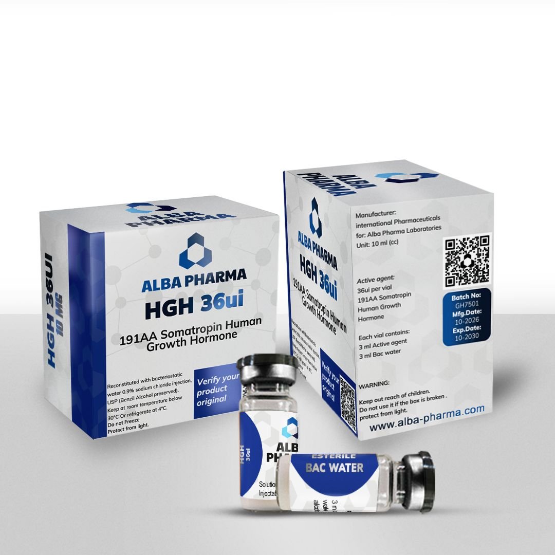 La Hormona SOMATROPIN 36 UI de ALBA PHARMA es una hormona de crecimiento humano recombinante (HGH, somatropina) utilizada tanto en el ámbito clínico como en el fisicoculturismo. Su principal función es estimular el crecimiento muscular, la regeneración celular y la pérdida de grasa, al mismo tiempo que potencia la producción de IGF-1 (factor de crecimiento similar a la insulina) en el hígado.
