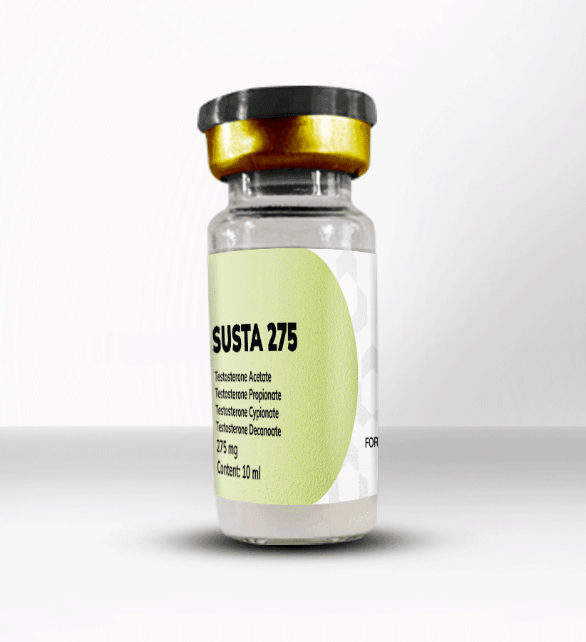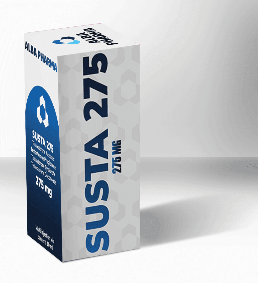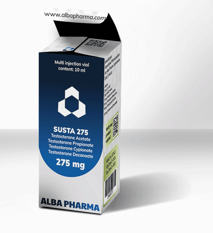 El SUSTA 275 de Alba Pharma es un vial de múltiples inyecciones con un contenido total de 10 ml, formulado con una potente mezcla de Testosterone Acetate, Testosterone Propionate, Testosterone Cypionate y Testosterone Decanoate, totalizando 275 mg por ml. Este producto es ampliamente utilizado por culturistas y atletas para promover el desarrollo de masa muscular y la mejora de la fuerza durante los ciclos de entrenamiento.